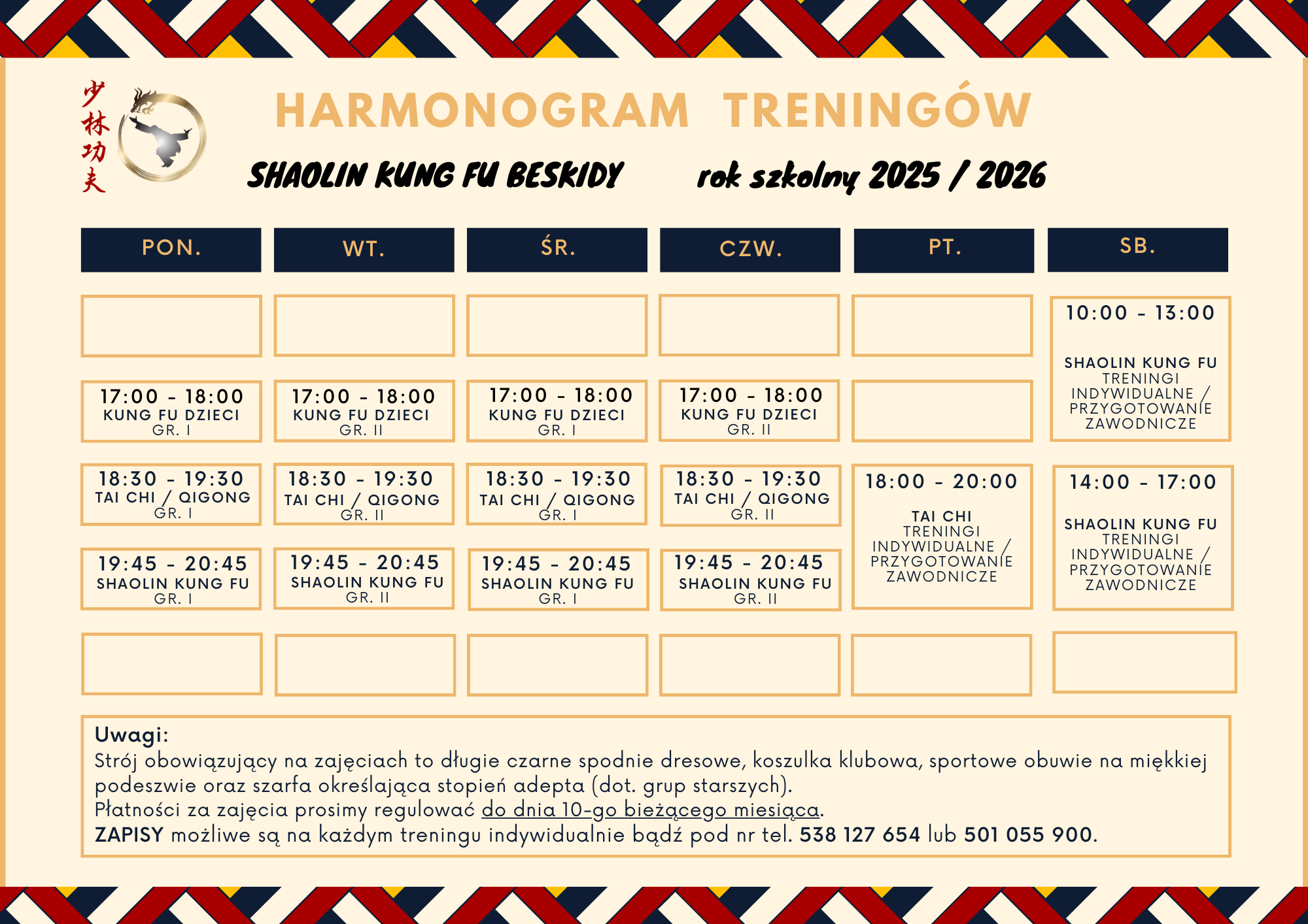 HARMONOGRAM TRENINGÓW